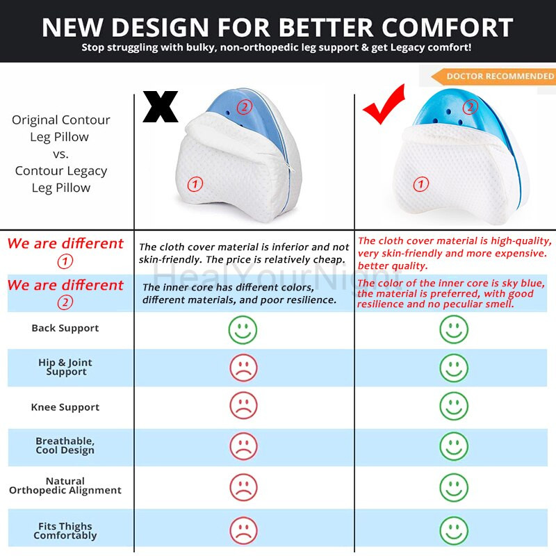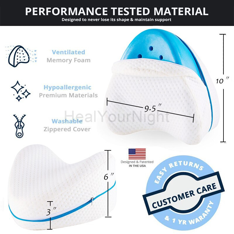 La única almohada que sostiene las piernas y las rodillas El diseño patentado finalmente brinda a los durmientes la comodidad de la que están hechos los sueños.