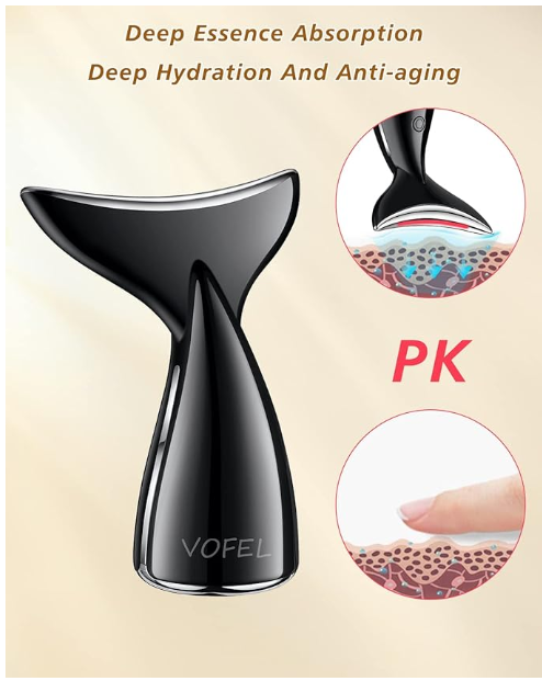 LA PIEL ABSORBE PERFECTAMENTE LA ESENCIA POR LA TEMPERATURA CALIENTE: El calor del masajeador facial absorbe la esencia por completo y hace que la piel brille y suave. El cabezal de masaje curvado de 113.0 °F se adapta perfectamente a la cara y el cuello.